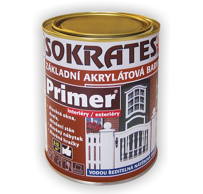 Sokrates Primer je základní akrylátová bílá barva na dřevo, minerální podklady, polystyren a podobně, pro venkovní a vnitřní prostředí. Vyznačuje se velmi dobrou přilnavostí, kryvostí a brousitelností. Zabraňuje puchýřkování vrchní barvy.